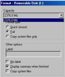 format of a 2.6GB disk by the windows
