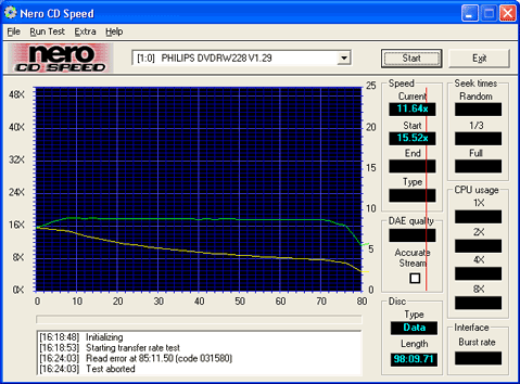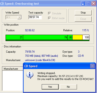 CD Speed to simulate a writing